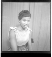575. EAP449/2/15/575 Reference (shelfmark): EAP449/2/15/575 Title: Profile view of a girl standing in the studio wearing a dress. Collection Area: Endangered Archives Programme Languages: Not applicable Date Range: 2nd half od the 20th century Extent: 1 TIFF image