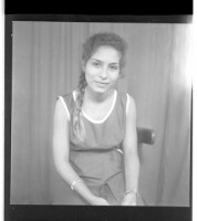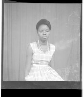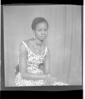 583. EAP449/2/15/583 Reference (shelfmark): EAP449/2/15/583 Title: Full frontal view of a woman sitting in the studio wearing a dress and a necklace. Collection Area: Endangered Archives Programme Languages: Not applicable Date Range: 2nd half od the 20th century Extent: 1 TIFF image