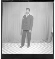 664. EAP449/2/15/664 Reference (shelfmark): EAP449/2/15/664 Title: Full frontal view of a man standing in the studio wearing a suit and tie. Collection Area: Endangered Archives Programme Languages: Not applicable Date Range: 2nd half od the 20th century Extent: 1 TIFF image