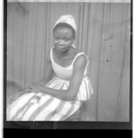 668. EAP449/2/15/668 Reference (shelfmark): EAP449/2/15/668 Title: Profile view of a woman sitting in the studio wearing a robe pagne (wrapper dress) and head scarf. Collection Area: Endangered Archives Programme Languages: Not applicable Date Range: 2nd half od the 20th century Extent: 1 TIFF image