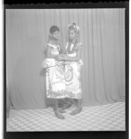 670. EAP449/2/15/670 Reference (shelfmark): EAP449/2/15/670 Title: Profile view of two women standing in the studio wearing robes pagnes (wrapper dresses) and necklaces. One is wearing a head scarf. Collection Area: Endangered Archives Programme Languages: Not applicable Date Range: 2nd half od the 20th century Extent: 1 TIFF image