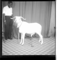 772. EAP449/2/15/772 Reference (shelfmark): EAP449/2/15/772 Title: Full frontal view of a man wearing a shirt and pants, standing in the studio next to a goat. Collection Area: Endangered Archives Programme Languages: Not applicable Date Range: 2nd half od the 20th century Extent: 1 TIFF image