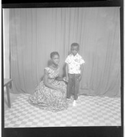 774. EAP449/2/15/774 Reference (shelfmark): EAP449/2/15/774 Title: A girl wearing a dress sitting profile view in the studio next to a boy wearing a shirt and pants, facing forward. Collection Area: Endangered Archives Programme Languages: Not applicable Date Range: 2nd half od the 20th century Extent: 1 TIFF image