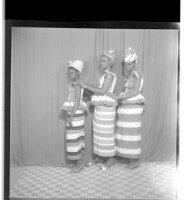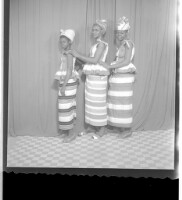 71. EAP449/2/15/71 Reference (shelfmark): EAP449/2/15/71 Title: Three women wearing dresses, pagnes, and head wraps standing in profile in the studio. Collection Area: Endangered Archives Programme Languages: Not applicable Date Range: 2nd half od the 20th century Extent: 1 TIFF image