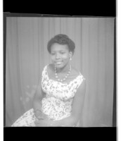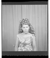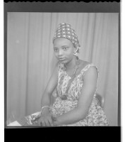 77. EAP449/2/15/77 Reference (shelfmark): EAP449/2/15/77 Title: A woman wearing a dress, head wrap, and necklace sitting face-forward in the studio. Collection Area: Endangered Archives Programme Languages: Not applicable Date Range: 2nd half od the 20th century Extent: 1 TIFF image