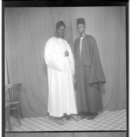 861. EAP449/2/15/861 Reference (shelfmark): EAP449/2/15/861 Title: Profile view of two men standing in the studio wearing boubous and caps. Collection Area: Endangered Archives Programme Languages: Not applicable Date Range: 2nd half od the 20th century Extent: 1 TIFF image