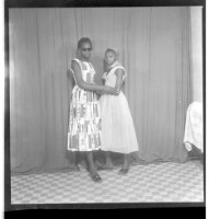 867. EAP449/2/15/867 Reference (shelfmark): EAP449/2/15/867 Title: Profile view of two women standing in the studio wearing dresses, one of whom is also wearing sunglasses and the other is wearing a head scarf. Collection Area: Endangered Archives Programme Languages: Not applicable Date Range: 2nd half od the 20th century Extent: 1 TIFF image