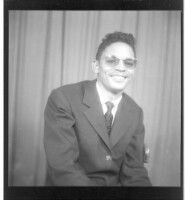 869. EAP449/2/15/869 Reference (shelfmark): EAP449/2/15/869 Title: Full frontal view of a man sitting in the studio wearing a suit, tie and sunglasses. Collection Area: Endangered Archives Programme Languages: Not applicable Date Range: 2nd half od the 20th century Extent: 1 TIFF image
