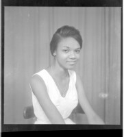 872. EAP449/2/15/872 Reference (shelfmark): EAP449/2/15/872 Title: Profile view of a woman sitting in the studio wearing a dress and a chain necklace. Collection Area: Endangered Archives Programme Languages: Not applicable Date Range: 2nd half od the 20th century Extent: 1 TIFF image
