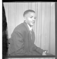 878. EAP449/2/15/878 Reference (shelfmark): EAP449/2/15/878 Title: Profile view of a man sitting in the studio wearing a shirt and pants. Collection Area: Endangered Archives Programme Languages: Not applicable Date Range: 2nd half od the 20th century Extent: 1 TIFF image