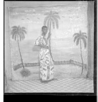 876. EAP449/2/15/876 Reference (shelfmark): EAP449/2/15/876 Title: Profile view of a woman standing in the studio wearing a robe pagne (wrapper dress) and chain necklace. Collection Area: Endangered Archives Programme Languages: Not applicable Date Range: 2nd half od the 20th century Extent: 1 TIFF image