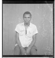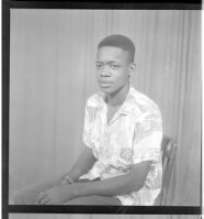 877. EAP449/2/15/877 Reference (shelfmark): EAP449/2/15/877 Title: Full frontal view of a man sitting in the studio wearing a shirt and shorts. Collection Area: Endangered Archives Programme Languages: Not applicable Date Range: 2nd half od the 20th century Extent: 1 TIFF image