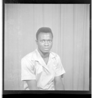 879. EAP449/2/15/879 Reference (shelfmark): EAP449/2/15/879 Title: Full frontal view of a man sitting in the studio wearing a shirt. Collection Area: Endangered Archives Programme Languages: Not applicable Date Range: 2nd half od the 20th century Extent: 1 TIFF image