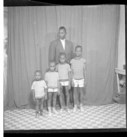 174. EAP449/2/17/174 Reference (shelfmark): EAP449/2/17/174 Title: A man wearing a suit behind four boys in T-shirts and shirts, all standing full frontal view in the studio. Collection Area: Endangered Archives Programme Languages: Not applicable Date Range: 2nd half od the 20th century Extent: 1 TIFF image