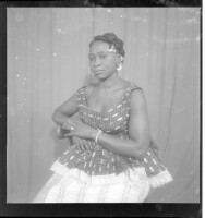 180. EAP449/2/17/180 Reference (shelfmark): EAP449/2/17/180 Title: A woman sitting profile view in the studio wearing a robe pagne (wrapper dress). Collection Area: Endangered Archives Programme Languages: Not applicable Date Range: 2nd half od the 20th century Extent: 1 TIFF image