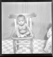 191. EAP449/2/17/191 Reference (shelfmark): EAP449/2/17/191 Title: A naked baby sitting full frontal view in a chair in the studio. Collection Area: Endangered Archives Programme Languages: Not applicable Date Range: 2nd half od the 20th century Extent: 1 TIFF image