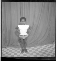 197. EAP449/2/17/197 Reference (shelfmark): EAP449/2/17/197 Title: A little girl wearing a shirt and shorts standing full frontal view in the studio. Collection Area: Endangered Archives Programme Languages: Not applicable Date Range: 2nd half od the 20th century Extent: 1 TIFF image