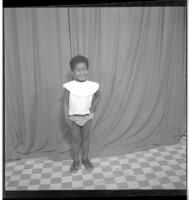 193. EAP449/2/17/193 Reference (shelfmark): EAP449/2/17/193 Title: Full frontal view of a little girl standing in the studio wearing a shirt and shorts. Collection Area: Endangered Archives Programme Languages: Not applicable Date Range: 2nd half od the 20th century Extent: 1 TIFF image