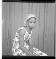 198. EAP449/2/17/198 Reference (shelfmark): EAP449/2/17/198 Title: Profile view of a woman sitting in the studio wearing a dress and a head scarf. Collection Area: Endangered Archives Programme Languages: Not applicable Date Range: 2nd half od the 20th century Extent: 1 TIFF image