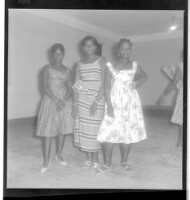 199. EAP449/2/17/199 Reference (shelfmark): EAP449/2/17/199 Title: Three women wearing dresses standing full frontal view in a large room. Collection Area: Endangered Archives Programme Languages: Not applicable Date Range: 2nd half od the 20th century Extent: 1 TIFF image