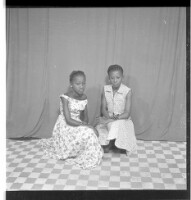 202. EAP449/2/17/202 Reference (shelfmark): EAP449/2/17/202 Title: Two girls wearing dresses; one is sitting profile view and the other is sitting facing forward. Taken in the studio. Collection Area: Endangered Archives Programme Languages: Not applicable Date Range: 2nd half od the 20th century Extent: 1 TIFF image