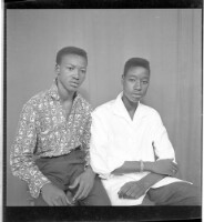 204. EAP449/2/17/204 Reference (shelfmark): EAP449/2/17/204 Title: Two men wearing shirts and pants, both sitting profile view in the studio. Collection Area: Endangered Archives Programme Languages: Not applicable Date Range: 2nd half od the 20th century Extent: 1 TIFF image