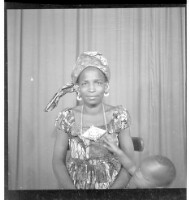 206. EAP449/2/17/206 Reference (shelfmark): EAP449/2/17/206 Title: A woman wearing a robe pagne (wrapper dress) and a chain necklace, sitting full frontal view in the studio. Collection Area: Endangered Archives Programme Languages: Not applicable Date Range: 2nd half od the 20th century Extent: 1 TIFF image
