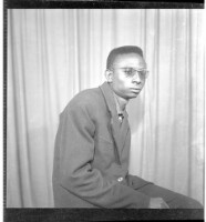 261. EAP449/2/17/261 Reference (shelfmark): EAP449/2/17/261 Title: A man sitting profile view in the studio wearing a suit and glasses. Collection Area: Endangered Archives Programme Languages: Not applicable Date Range: 2nd half od the 20th century Extent: 1 TIFF image