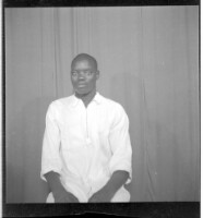262. EAP449/2/17/262 Reference (shelfmark): EAP449/2/17/262 Title: Full frontal view of a man sitting in the studio wearing a boubou. Collection Area: Endangered Archives Programme Languages: Not applicable Date Range: 2nd half od the 20th century Extent: 1 TIFF image