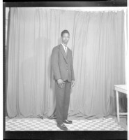 269. EAP449/2/17/269 Reference (shelfmark): EAP449/2/17/269 Title: Full frontal view of a man standing in the studio wearing a suit and tie. Collection Area: Endangered Archives Programme Languages: Not applicable Date Range: 2nd half od the 20th century Extent: 1 TIFF image