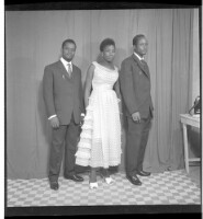 270. EAP449/2/17/270 Reference (shelfmark): EAP449/2/17/270 Title: A woman wearing a dress between two man wearing suits and ties, all standing profile view in the studio. Collection Area: Endangered Archives Programme Languages: Not applicable Date Range: 2nd half od the 20th century Extent: 1 TIFF image