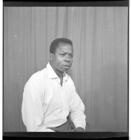 391. EAP449/2/17/391 Reference (shelfmark): EAP449/2/17/391 Title: A man wearing a shirt sitting full frontal view in the studio. Collection Area: Endangered Archives Programme Languages: Not applicable Date Range: 2nd half od the 20th century Extent: 1 TIFF image
