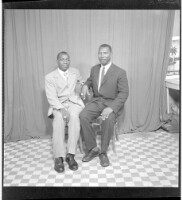 400. EAP449/2/17/400 Reference (shelfmark): EAP449/2/17/400 Title: Two men wearing boubous and caps, one of whom is also wearing glasses, both sitting full frontal view in the studio. Collection Area: Endangered Archives Programme Languages: Not applicable Date Range: 2nd half od the 20th century Extent: 1 TIFF image