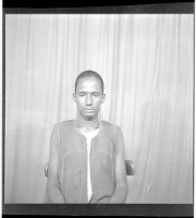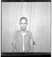 Two women wearing dresses, one of whom is also wearing a head scarf and the other is wearing a chain necklace. Both are sitting full frontal view in the studio.