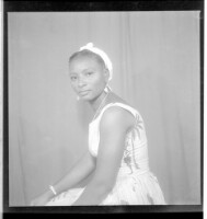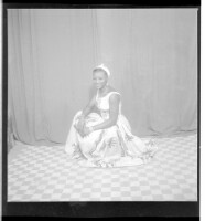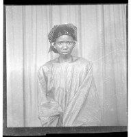 433. EAP449/2/17/433 Reference (shelfmark): EAP449/2/17/433 Title: A woman wearing a loose dress and a head scarf sitting full frontal view in the studio. Collection Area: Endangered Archives Programme Languages: Not applicable Date Range: 2nd half od the 20th century Extent: 1 TIFF image