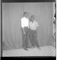 551. EAP449/2/17/551 Reference (shelfmark): EAP449/2/17/551 Title: Two men wearing shirts and pants, one of whom is wearing a cap. Both are standing profile view in the studio. Collection Area: Endangered Archives Programme Languages: Not applicable Date Range: 2nd half od the 20th century Extent: 1 TIFF image