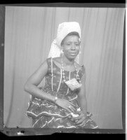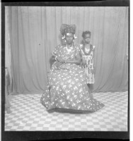 559. EAP449/2/17/559 Reference (shelfmark): EAP449/2/17/559 Title: A woman wearing a dress, head scarf, and a necklace sitting full frontal view next to a little girl wearing a dress and necklaces. She is standing full frontal view in the studio. Collection Area: Endangered Archives Programme Languages: Not applicable Date Range: 2nd half od the 20th century Extent: 1 TIFF image