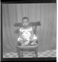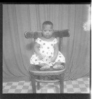 556. EAP449/2/17/556 Reference (shelfmark): EAP449/2/17/556 Title: A little girl wearing a dress sitting full frontal view on a chair in the studio. Collection Area: Endangered Archives Programme Languages: Not applicable Date Range: 2nd half od the 20th century Extent: 1 TIFF image