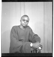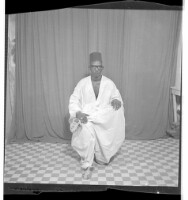 54. EAP449/2/17/54 Reference (shelfmark): EAP449/2/17/54 Title: Full frontal view of a man sitting in the studio wearing a boubou. Collection Area: Endangered Archives Programme Languages: Not applicable Date Range: 2nd half od the 20th century Extent: 1 TIFF image