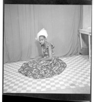 58. EAP449/2/17/58 Reference (shelfmark): EAP449/2/17/58 Title: A woman wearing a dress, head scarf, and necklace sitting profile view in the studio. Collection Area: Endangered Archives Programme Languages: Not applicable Date Range: 2nd half od the 20th century Extent: 1 TIFF image