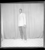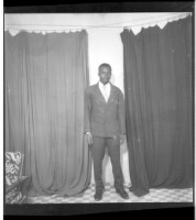 704. EAP449/2/17/704 Reference (shelfmark): EAP449/2/17/704 Title: Full length portrait of a man standing wearing a white shirt and full black suit, looking to the side Collection Area: Endangered Archives Programme Languages: Not applicable Date Range: 2nd half od the 20th century Extent: 1 TIFF image