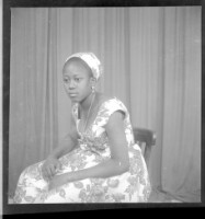 708. EAP449/2/17/708 Reference (shelfmark): EAP449/2/17/708 Title: A young girl sitting on a chair wearing a full dress, a necklace and arms crossed, profile shot Collection Area: Endangered Archives Programme Languages: Not applicable Date Range: 2nd half od the 20th century Extent: 1 TIFF image