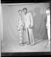 743. EAP449/2/17/743 Reference (shelfmark): EAP449/2/17/743 Title: A man wearing a suit and holding a wallet next to a woman wearing a loincloth dress, both facing forward Collection Area: Endangered Archives Programme Languages: Not applicable Date Range: 2nd half od the 20th century Extent: 1 TIFF image