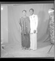 771. EAP449/2/17/771 Reference (shelfmark): EAP449/2/17/771 Title: A man in a full suit standing, facing sideways, next to a woman wearing a loincloth dress and a necklace, standing facing forward Collection Area: Endangered Archives Programme Languages: Not applicable Date Range: 2nd half od the 20th century Extent: 1 TIFF image