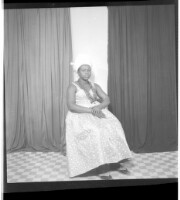 838. EAP449/2/17/838 Reference (shelfmark): EAP449/2/17/838 Title: A woman wearing a grey dress, necklaces, a white head scarf with arms crossed, sitting and facing forward Collection Area: Endangered Archives Programme Languages: Not applicable Date Range: 2nd half od the 20th century Extent: 1 TIFF image