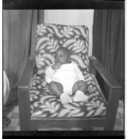 883. EAP449/2/17/883 Reference (shelfmark): EAP449/2/17/883 Title: A baby in diapers wearing white, sitting on a chair and facing forward Collection Area: Endangered Archives Programme Languages: Not applicable Date Range: 2nd half od the 20th century Extent: 1 TIFF image