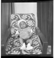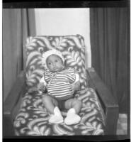 886. EAP449/2/17/886 Reference (shelfmark): EAP449/2/17/886 Title: A baby in diapers, sitting in a chair, wearing a t-shirt and a white head scarf, facing forward Collection Area: Endangered Archives Programme Languages: Not applicable Date Range: 2nd half od the 20th century Extent: 1 TIFF image
