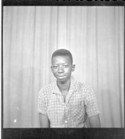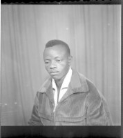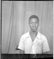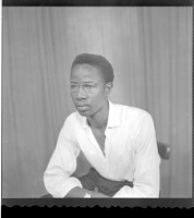 Full shot of 3 men standing up: on the left wearing a shirt and grey pants, watch and glasses, the man in the middle wearing a white long sleeve shirt with black pants and a watch and on the right wearing a black boubou with a hat, facing forward.