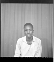 A couple sitting; a young man wearing a white long sleeved shirt, ring and a young girl wither hair done wearing a white shirt, black skirt, earrings, necklace and bracelet, with their arms on their laps, facing forward.