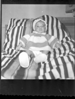 Full shot of 9 kids: on the right 5 little girls wearing white with their hair done, the tallest one in the middle and on the right 4 little boys wearing white t-shirts and shorts, facing forward. (Double)